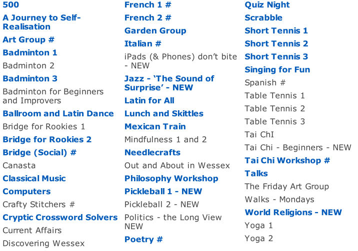 Groups with room for more members, as at 12th October, are shown in blue; groups that are full and may have waiting lists are in black.